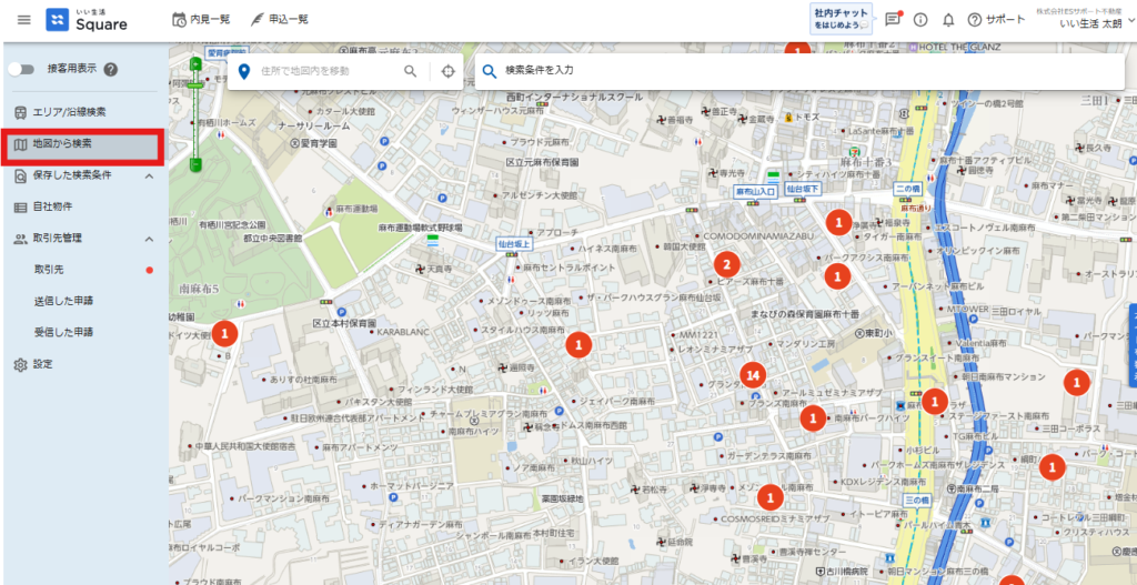 画面左メニューの「地図から検索」機能では、検索条件の保存は出来ません。
