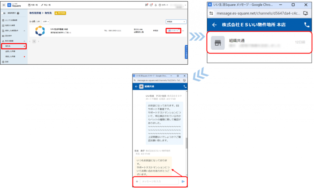 メッセージは取引先ごとに、または取引先の物件ごとに送信することができます。