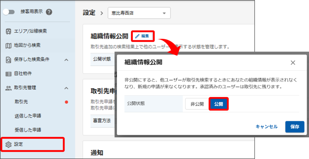 ※設定はいい生活アカウント管理画面の組織編集画面でも変更可能です。